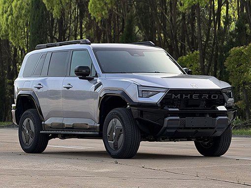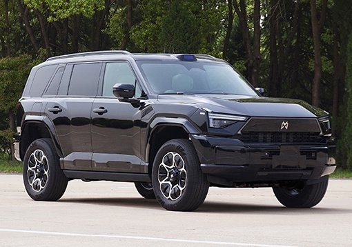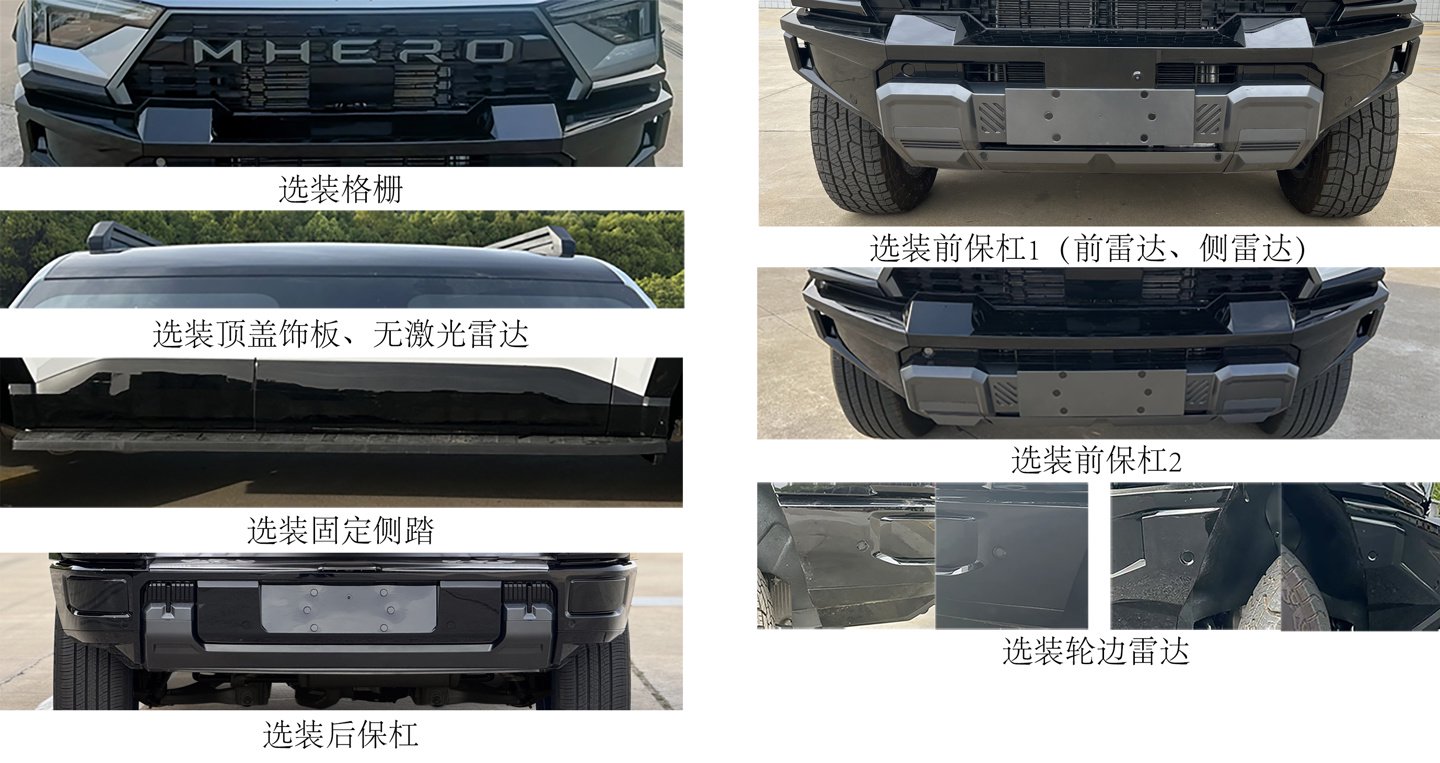 新车不息猛士 917 的硬派格调,但全体气质比较前者要“保守”一些;车顶配有激光雷达,尾部也配备了“小书包”外挂式储物箱,可选外挂备胎。此外,新车还可选装带有“MHERO”字样的前格栅。